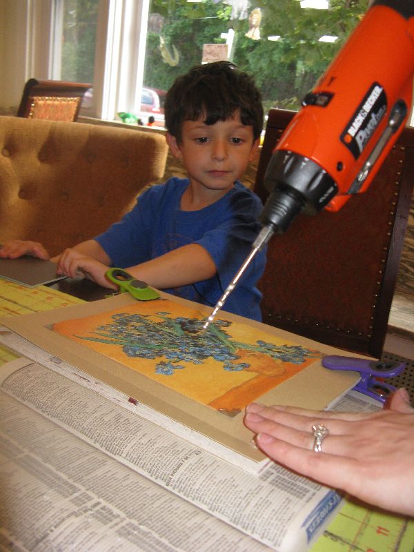 Then we assembled the pages of Micah's book, based on one of his favorite songs by the Clarks. |