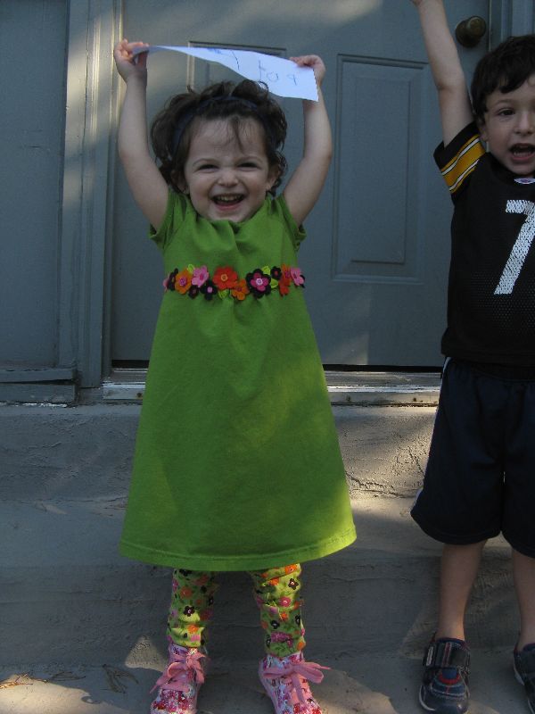 The sign in her hands says "first day of preschool."