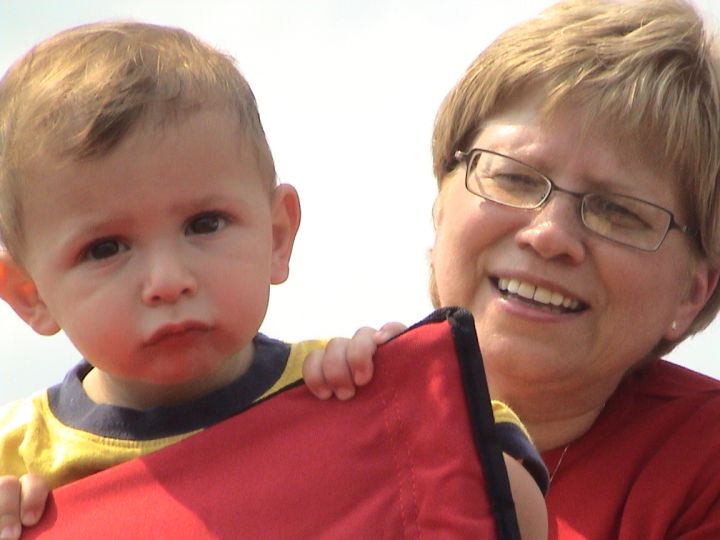 Kallie beams as her brother rounds second, and then third ...