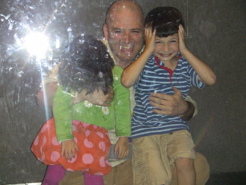 By coincidence, Jen's high school physics teacher was the MC for their science show!