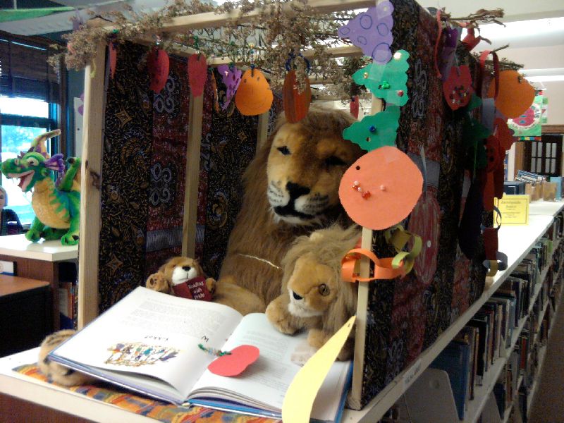 Micah and Daddy also built a miniature sukkah for Lev, the school mascot!
