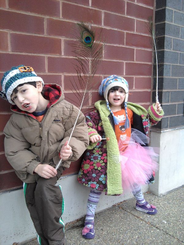 At another of Mommy's shows, a vendor gave the kids peacock feathers to play with