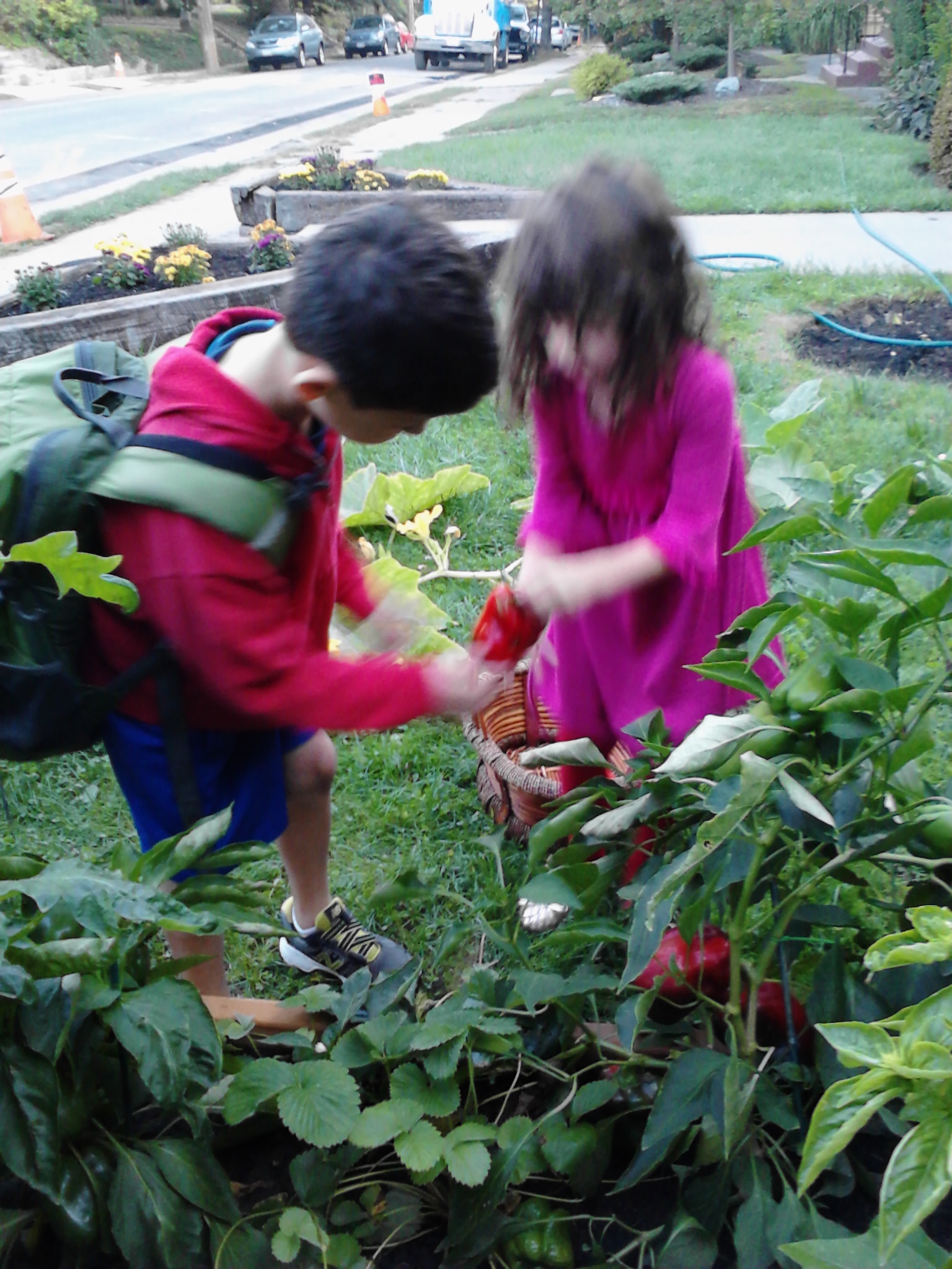 Micah and Sadie took a break from gardening for some artistic expression