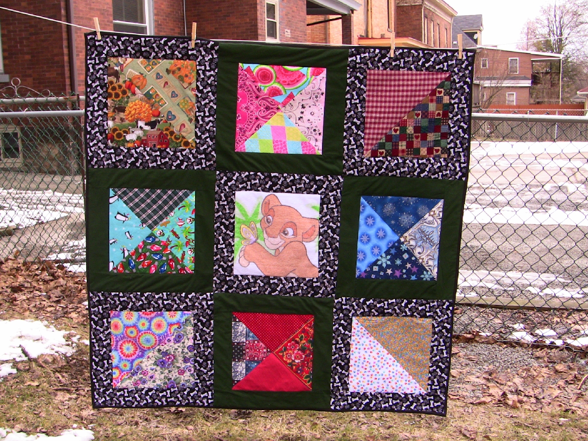 Jen custom-made a quilt out of a dog's bandanas for his owner