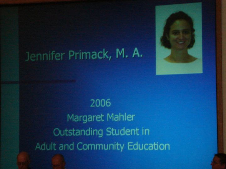 Out of nowhere we learned that Jen was picked as the most outstanding student in the program, for both her academic excellence as well as her work in the community.